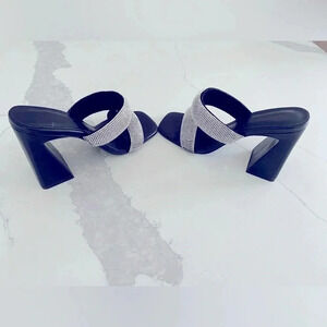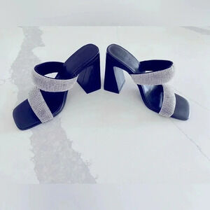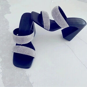 Nordstrom Open Edit Sasha Retro Rhinestone Sandals Black Women’s size 6.5 NEW