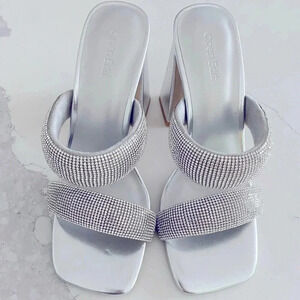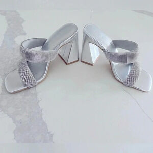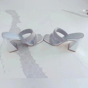 Nordstrom Open Edit Sasha Retro Rhinestone Sandals Silver Metallic Size 6.5 NEW