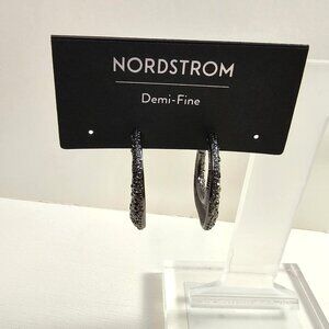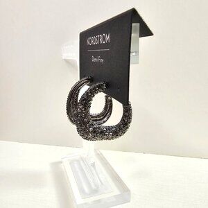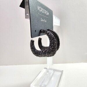 Nordstrom earrings, Panacea jewelry, black crystal hoops, square hoop earrings, pavé design earrings, elegant jewelry, statement earrings, crystal jewelry, stylish hoops, Nordstrom Demi-Fine, black pavé earrings, chic hoop earrings, modern fashion accessories