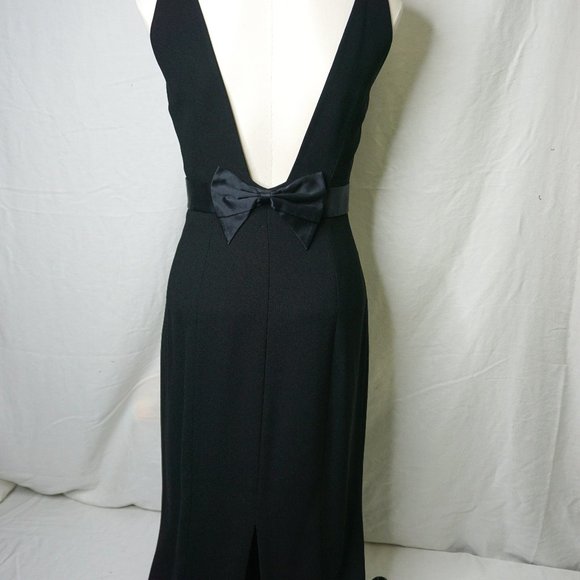 Nordstrom Preview Collection Long Black Dress with a plunging back and sexy back slit. Simple sleeveless front / V-Neck Back with Bow detail at base of back / 70% Triacetate / 30% Polyester