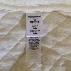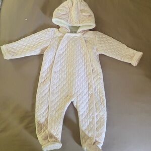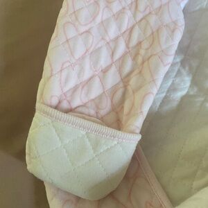 Soft quilted baby bunting, like new, worn once. flaps for folding over cold hands