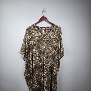 Nordstrom Rack Animal Print Caftan Cover Up lady kimono One Size Brown Leopard