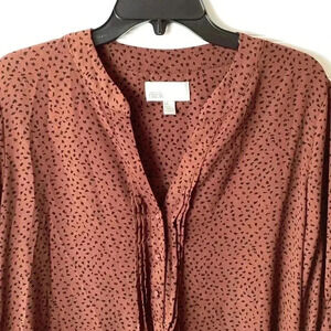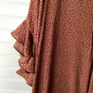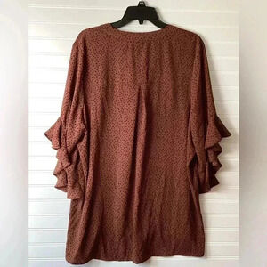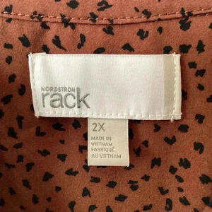 Nordstrom Rack Brown Leopard Print Ruffled 3/4 Sleeves V neck Top Blouse size 2X