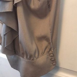 Brownish gold ruffled blouse with buttons on the side