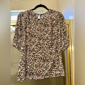 This chic sundress boasts a striking animal print in brown and cream, ideal for casual settings. It features 3/4 puff sleeves and a crew neck, offering a blend of style and comfort. The lightweight fabric enhances its elegant silhouette, making it a versatile addition to any wardrobe.