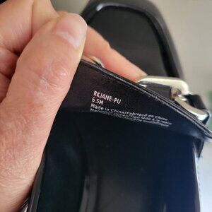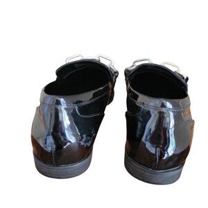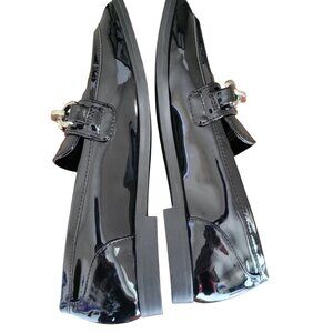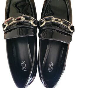 Nordstrom Rack Loafer Women Black Glossy Flat Moc Rack Jane Chain-Link Shoe 6.5M