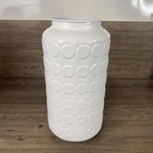 Description: Nordstrom Rack Metal Jar Design Vase With Embossed Spotted Design, White