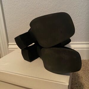 @labrinikrid I just included a pic with a tape measure. From the back center where the heel meets the shoe it’s approx. 2 3/4”.
