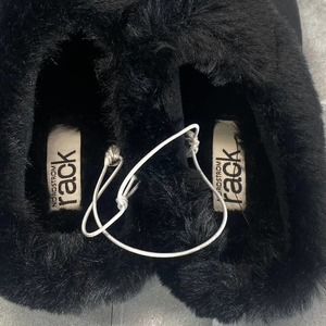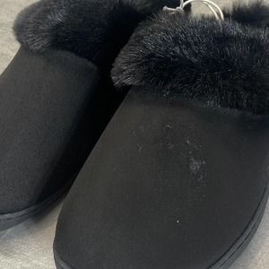 Nordstrom Rack Women's Black Holly Faux-Fur Round-Toe Slip-On Clog Slippers SZ S