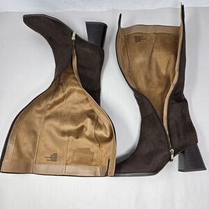 Nordstrom Rack Womens Knee High Heel Boots Sz 6.5M Faux Brown Suede Stretch Calf