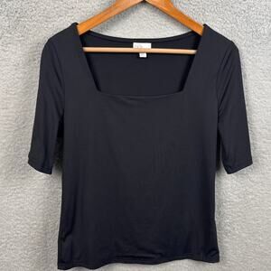 Nordstrom Rack Women's Scuba Double Knit Tee Shirt Deep Square Neck Size M