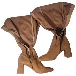 Nordstrom Rack Women's Tan Suede Block Heel Knee High Boots Size 10M
