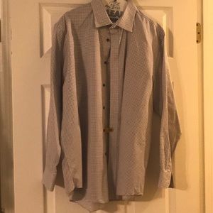 Small purple and navy check, straight from cleaners only worn once, traditional fit