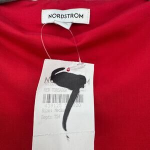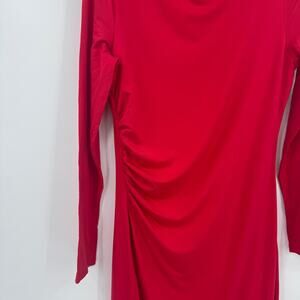 Nordstrom Red Side Ruched Long Sleeve Midi Dress Rib Knit Crew Neck Small