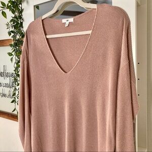 The perfect neutral basic sweater that will go with anything! Ribbed. Plunging V-neck. Long sleeves. Side slits.