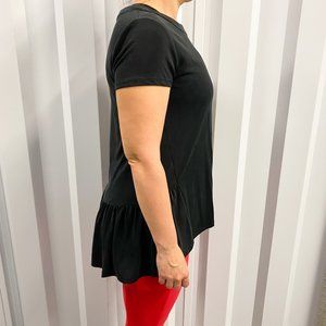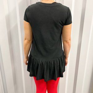 Nordstrom S Hi/Lo Ruffle Back Hem Tee Short Sleeve Shirt Black