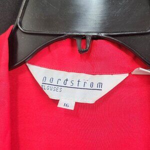 Nordstrom SILK Red Short Sleeve Blouse Top Collared Button Front Women's Size M