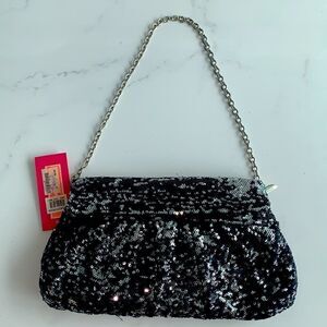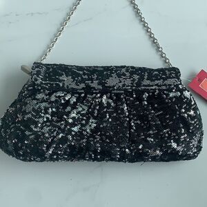 Brand new with tags, 2 chains differing lengths included, can also be worn with chain tucked as a clutch.