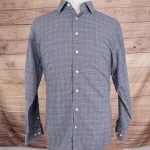 Nordstrom Shirt Mens 17.5 Blue Non Iron Trim Fit Plaid Dress Long Sleeve