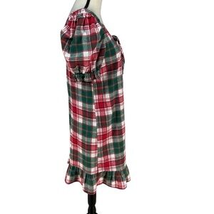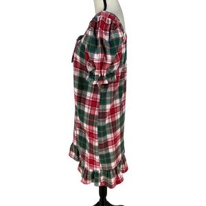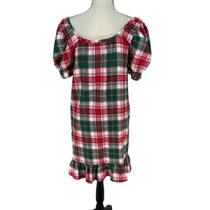 Nordstrom Short Puff Sleeve Tie Collar Ruffle Bottom Dress - Green Red - size XS