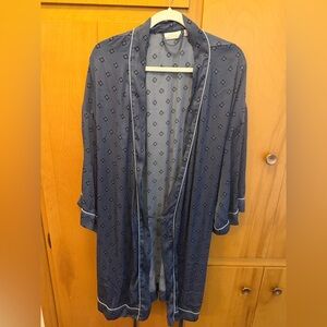 Good condition. Navy blue with light blue and dark blue pattern. Tie on inside as well as tie on outside of the robe. Barely used. Non-smoking, non-pet household.
