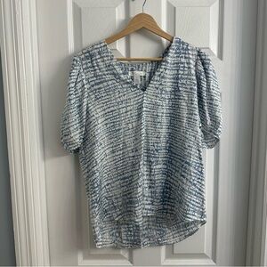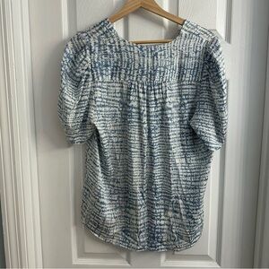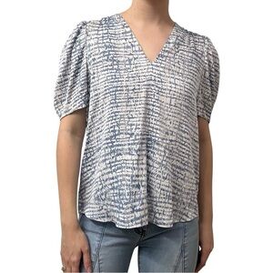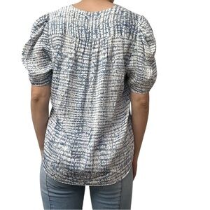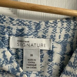 Nordstrom Signature Blouse Puff Sleeve Blue Dainty Silk Blend Size Medium