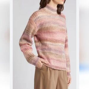 Nordstrom Signature Open Stitch Mock Neck Sweater Rustic Pink Multi Size L & XL