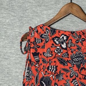Nordstrom Signature Silk Orange Blue Floral Ruffle Dress Size 10 Casual Date