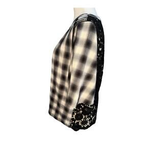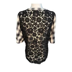 Nordstrom Signature Women's Plaid Blouse Black & White Size Small Lace Back