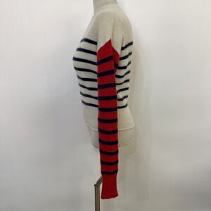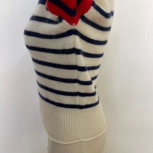 Nordstrom Signature Women's Sweater Small Ivory Red Blue 100% Cashmere Striped