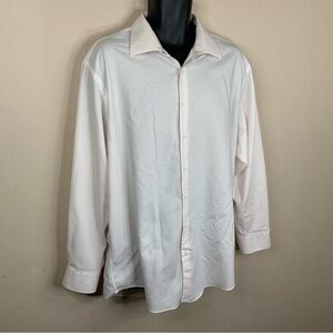 Nordstrom Size 17 XL Pink White Checkered Long Sleeve Dress Shirt Tech Smart