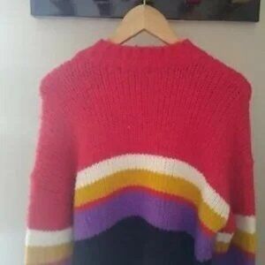New Stripe Wool Alpaca Chunky Oversized Knit Sweater Medium