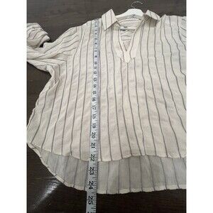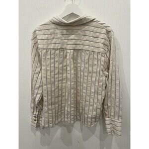 The Nordstrom Striped Popover in size Large is a stylish and versatile piece perfect for a coastal beach casual look. Made from a comfortable linen blend, this blouse features a classic V-neck and long sleeves, making it suitable for all seasons. The beige color and striped pattern add a touch of elegance, while the pullover closure makes it easy to wear. The Nordstrom brand ensures quality and style, making this top a must-have for any woman's wardrobe.