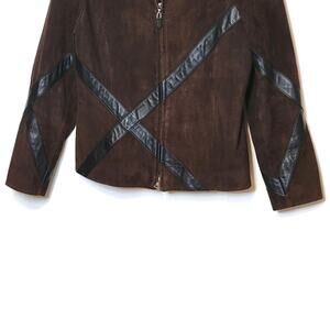 Nordstrom Studio 121 Brown Suede Leather Jacket Zip Front Long Sleeve Chic S