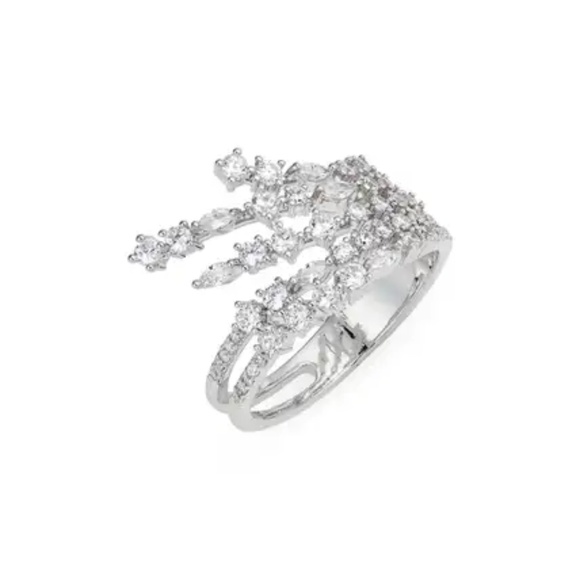 A mixture of cuts brings dynamic light to the cubic zirconias atop this sculptural ring.