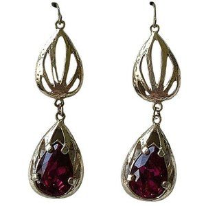 Nordstrom Stunning Silver & Red Crystal Drop Earrings