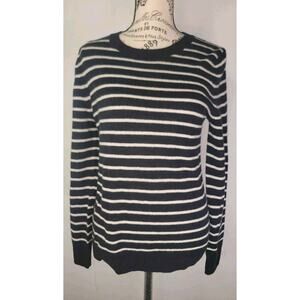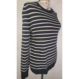 Nordstrom Sweater XS Womens 100% Cashmere Crewneck Black White French Striped