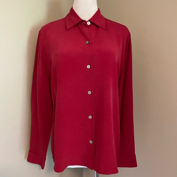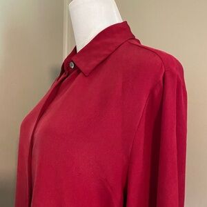 Nordstrom Sz L Classic Red Button-Up Women's Silk Blouse