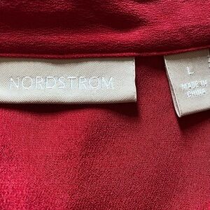 Elevate your wardrobe with this Nordstrom 100% silk classic red button-up blouse. Perfect for any occasion, this stylish piece offers both comfort and elegance as well as chic and sophisticated.