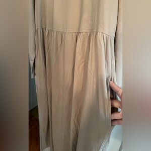 Elegant tan maxi dress. Relaxed fit. Perfect for any occasion.