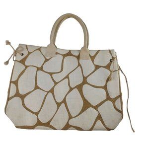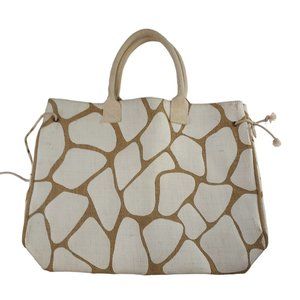 Nordstrom Tan White Giraffe Print Burlap Beach 17x12.5 Tote