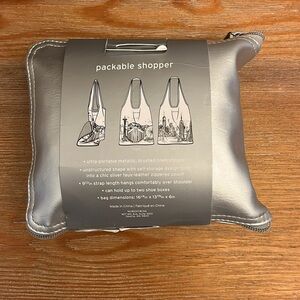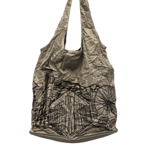 Nordstrom Tote Bag NWT Cityscape Silver Travel Fold Zip Up Packable Reusable