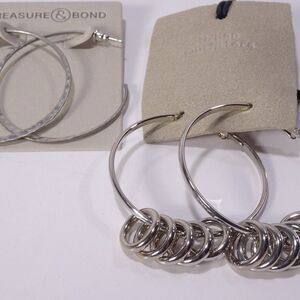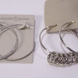 Nordstrom Treasure & Bond Hammered Silver Hoop Earrings NWT 29.00 Eac Set of 2