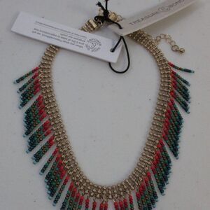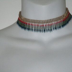 Nordstrom Treasure & Bond Seedbead Multi Color Gold Fringe Choker Necklace NWT 8