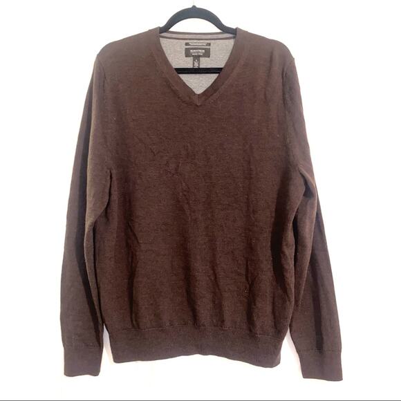 Nordstrom V Neck Merino Wool Brown Sweater L