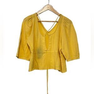 Nordstrom Vero Moda Gabi Woven Crop Top in Cornsilk Yellow Sz Small NWT
