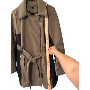Nordstrom Via Spiga Rain Jacket Longline Belted Trench Coat Tan Black