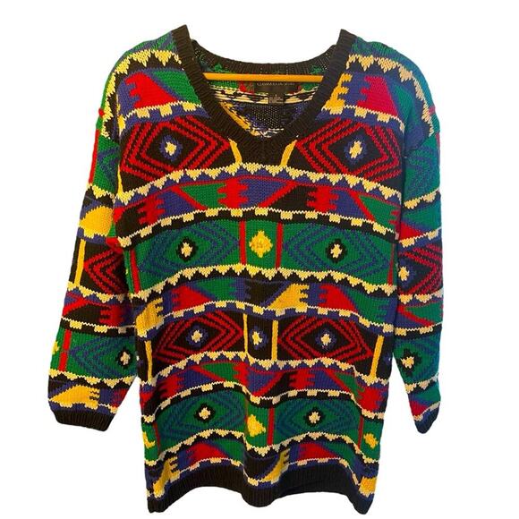 Nordstrom, Classiques Entier, Vintage 90s sweater, Bold geometric print, V-neck pullover, Streetwear, Grunge, Bold, Colorful knit, Unisex, Oversized, Retro sweater, Hipster, Festival, Coogi inspired, Y2K fashion