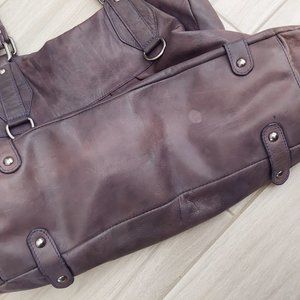 Nordstrom Vintage Purple Italian Leather XL Satchel Tote Handbag