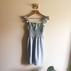 Nordstrom WAYF Smock Waist Gingham Mini in Blue & White. In excellent condition. No holes, rips, or stains. Ours is a smoke free home.